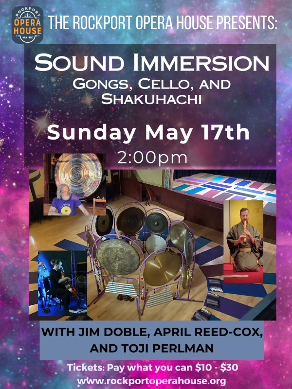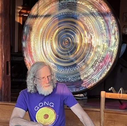 Sound therapist, Jim Doble, teaches and plays a variety of gongs and other percussion throughout Maine and abroad.