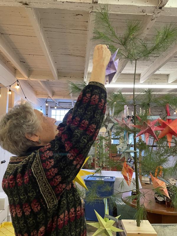 Christine Hopf-Lovette, Holiday Gift Shop manager, helps set the stage for a wonderful shopping experience in the historic Nickels Sortwell House barn. Wiscasset Holiday Marketfest photo