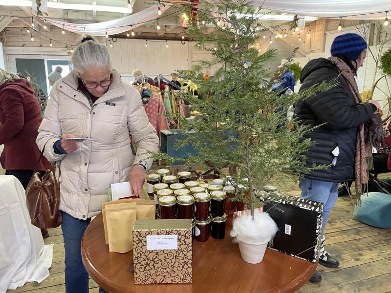 Shoppers in the Holiday Gift Shop enjoy the rustic setting of an old barn and the large selection of handmade items. Wiscasset Holiday Marketfest photo