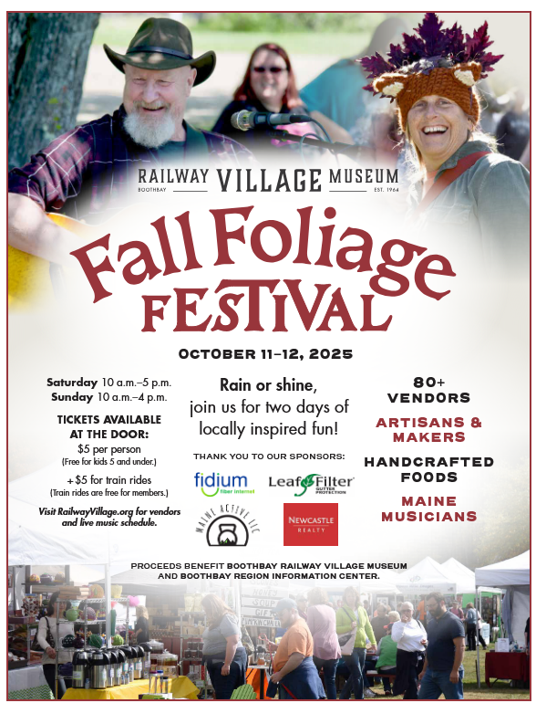 The 57th Fall Foliage Festival is set for this Saturday, Oct. 11 from 10 a.m. to 5 p.m. and Sunday, Oct. 12 from 10 a.m. to 4 p.m. at the Boothbay Railway Village Museum.
