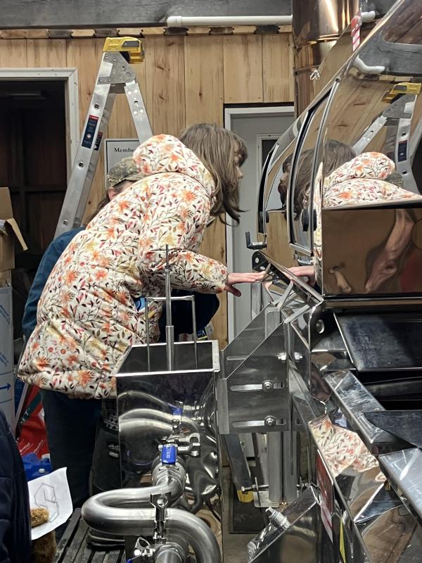 The students toured the sugarbush, checked the lines, and then saw the lighting of the evaporator. They had questions, and Marcoux had answers. The fourth grade could have stayed all day to learn more. The sweetest part of the trip (beyond tasting the syrup) was connecting what students had already learned to what Marcoux was teaching them.