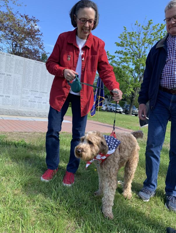 Wiscasset’s Teresa Fogg and Labradoodle Sam are dressed patriotically for American Legion Post 54’s Memorial Day observance in Wiscasset. SUSAN JOHNS/Wiscasset Newspaper