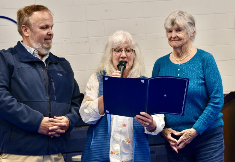 The meeting began with recognition of Mary King as this year’s recipient of the “Spirit of America” award. Mary King, wife of Robert King, has served as a ballot clerk for over 50 years. She is also a former treasurer for Woolwich Historical Society.