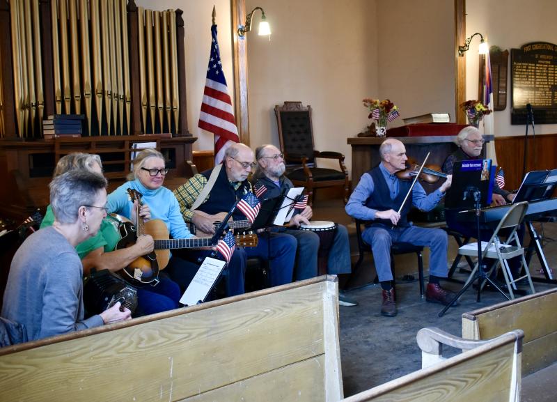 Matthew Mank, a representative of Honor Flight Maine, was the keynote speaker at the Tuesday, Nov. 11 Veterans’ Day program held at Nequasset Meetinghouse in Woolwich. Hosted by the Special Events Committee, the program featured live music by The Montsweagers.