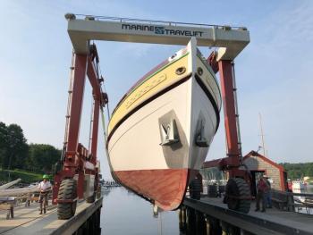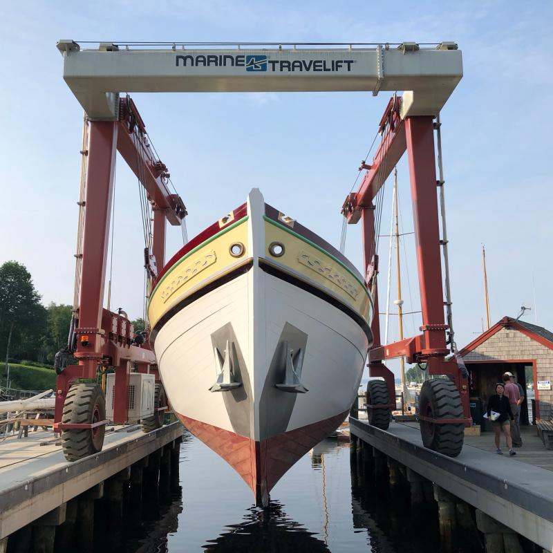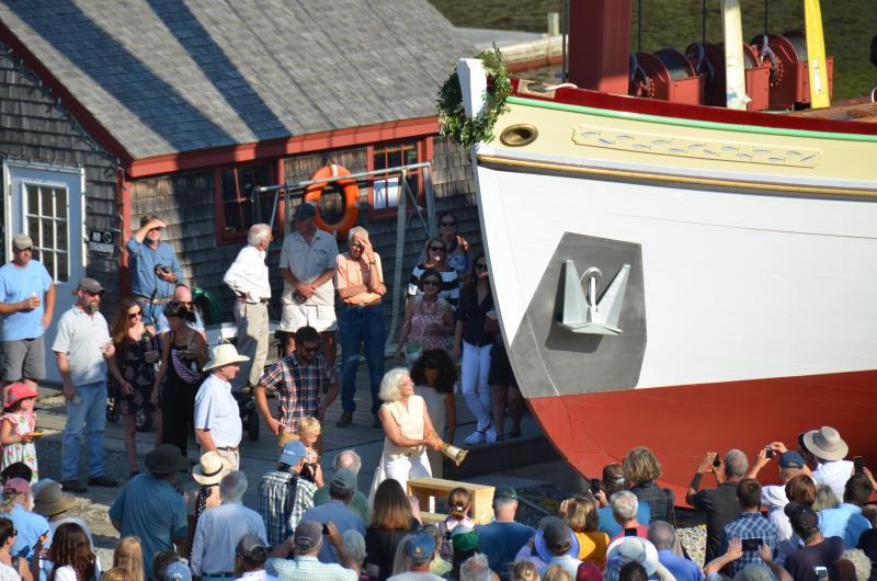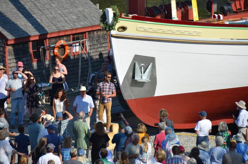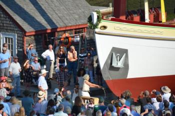 In homage to form and function, Rockport Marine launches rebuilt sardine carrier to cheering crowd